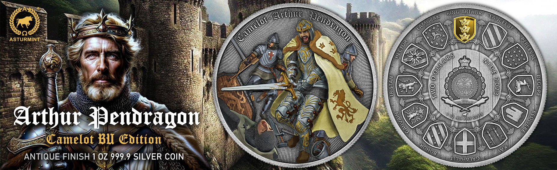 It’s a pleasure to present the antique finish version of the Arthur Pendragon bullion coin, the first antique finish coin in our new Camelot BU Edition series.