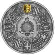 The obverse of the coin features the twelve shields and names of the twelve houses of Camelot, that of Arthur Pendragon, King of Britain, and eleven other knights who will be the next releases in the series. King Arthur’s shield is plated in 24k gold.